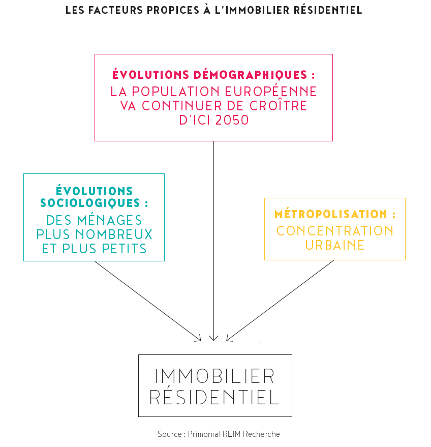 Nous pensons que les facteurs démographiques, sociologiques, et la poursuite du phénomène de métropolisation sont autant d’éléments déterminants pour l’investissement en immobilier résidentiel.